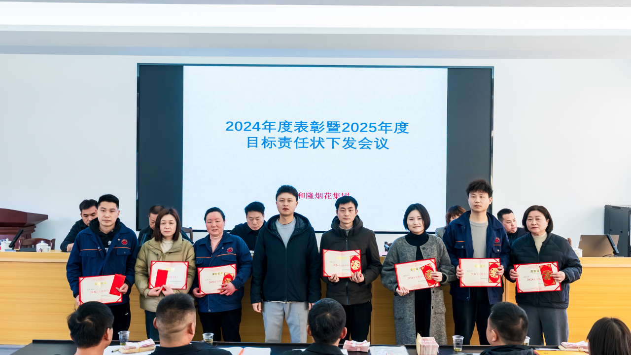 2025年4月1日,颐和隆烟花召开了2024年度基地评优表彰暨2025年目标责任书下达会议。集团公司董事长黄宇伦、总经理屈湘水、生产副总袁洪斌、副总经理钟际豪、黄倩等公司领导,各厂厂委会及全体管理人员出席了此次会议。